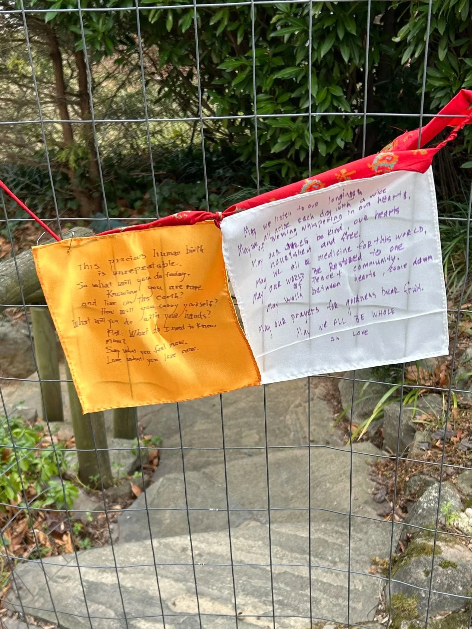 The first Sundays of the month we spend the last Zazen period in community sharing, tea and Sangha. This night we are bringing and sharing prayer flags that we make out of napkins, paper, cards, cloth, with words for wishes, hope, peace.